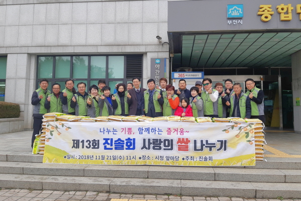 부천지역 봉사모임 진솔회는 지난 21일 어려운 이웃을 위해 550만원 상당의 쌀 152포와 온누리상품권 132매를 부천시에 기부했다. 기부 받은 쌀과 온누리상품권은 저소득 아동과 소외아동을 위해 쓰이도록 부천시지역아동센터연합회와 세상을품은아이들에 전달됐다.