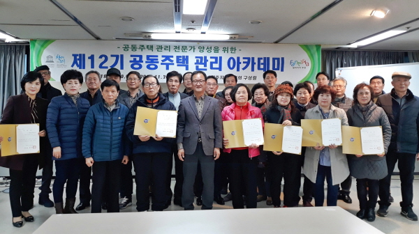 부천시는 지난 20일 공동주택관리 전문가 양성을 위한 ‘제12기 공동주택관리 아카데미’ 수료식을 갖고 수료생 37명을 배출했다. 이로써 지난 2013년부터 공동주택 관리주체 및 입주자대표회의 구성원을 대상으로 운영해 온 부천시 공동주택관리 아카데미 수료생은 총 429명이다.