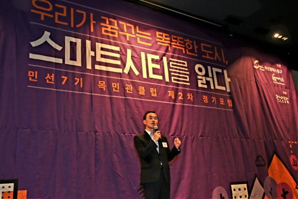 1부에서는 황종선 한국정보화진흥원 연구위원의 ‘스마트시티의 현재와 미래’, 남광우 경성대 교수의 ‘스마트시티 거버넌스 활성화 방안’의 강연이 이어졌고, 2부에서는 기초자치단체의 스마트시티 성공 사례 발표로 서울 서대문구와 부산 동구의 스마트시티 사례발표가 열렸다.