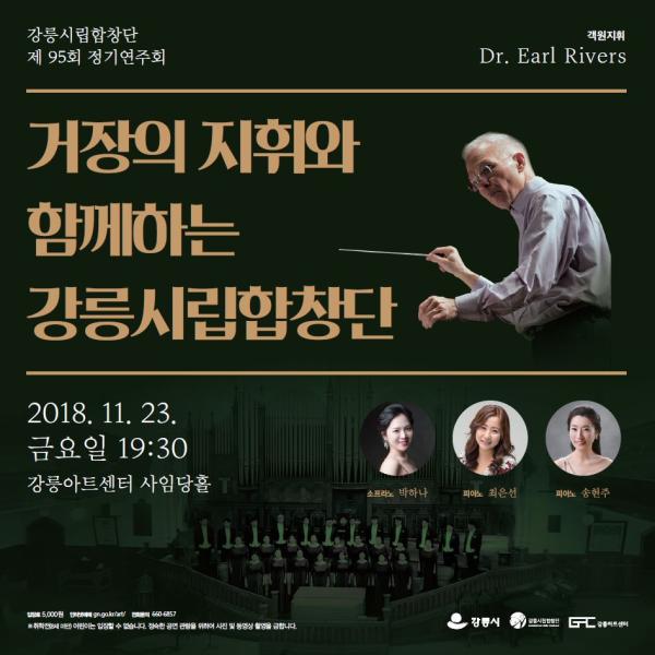 강릉시립합창단은 23일 오후 7시 30분 강릉아트센터 사임당홀에서 제95회 정기연주회 “거장의 지휘와 함께하는 강릉시립합창단 연주회”를 개최한다.