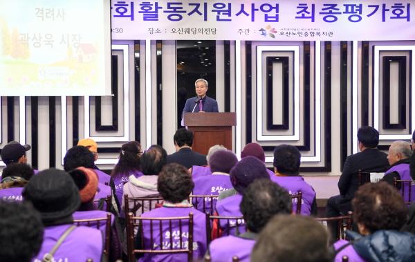 오산시는 지난 19일과 22일, 23일 3일에 걸쳐 관내 웨딩의 전당에서 2018년 노인일자리 및 사회활동참여자 약 1,351명의 어르신들과 함께 건강한 노후생활을 영위할 수 있도록 다양한 사회활동 기회를 제공했던 "2018년 노인사회활동지원사업 최종평가회"를 개최했다고 밝혔다.