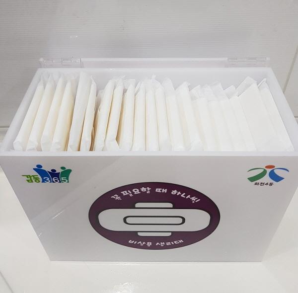 동은 여성 보건위생에 필수적인 물품을 비치해 일부 저소득층 십대여성이 생리대를 구입하지 못하는 어려움과 미처 준비하지 못해 곤란을 겪는 여성의 어려움을 해소하고자 이번 사업을 추진한다. 무인 생리대함은 관내 주민이나 단체의 기부를 통해 지속적으로 운영할 계획이다.