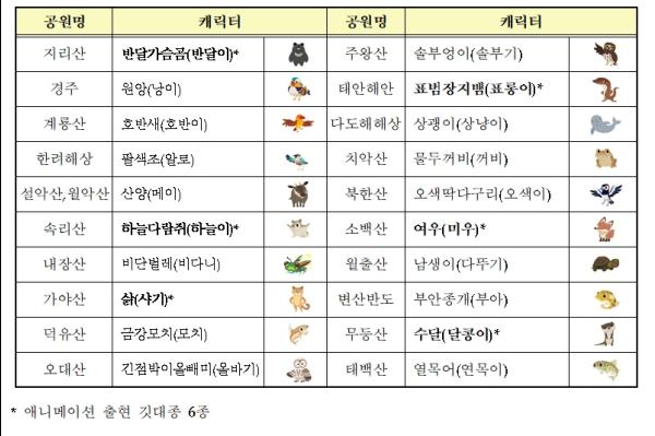 국립공원 깃대종 캐릭터로 교육용 애니매이션 개발 및 배포
