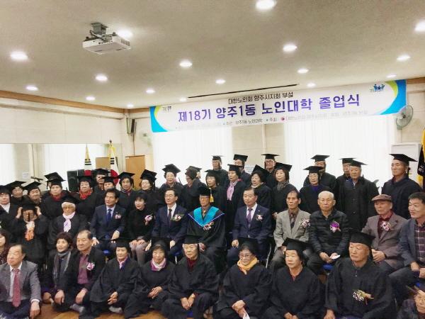 양주시는 대한노인회 양주시지회 부설 노인대학 9개소의 2018년도 졸업식을 성황리에 마무리했다고 23일 밝혔다. 대한노인회 양주시지회 부설 노인대학은 지난 4월 개강해 매주 1회 다양한 프로그램으로 교육을 진행해 관내 어르신들에게 배움과 여가선용의 장을 마련했다.