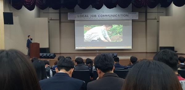 평택시 노사민정협의회 실무협의회는 지난 10월 29일 국제대학교, 11월 8일 한국복지대학교에서 ‘LOCAL JOB COMMUNICATION’을 개최했다. ‘LOCAL JOB COMMUNICATION’은 노사민정협의회에서 2017년부터 시작한 사업으로 지역기업과 지역청년의 만남을 통해 청년들이 제조업에 대해 가지고 있는 편견을 해소하고 지역기업에 대한 이해와 취업연계를 위한 사업이다.