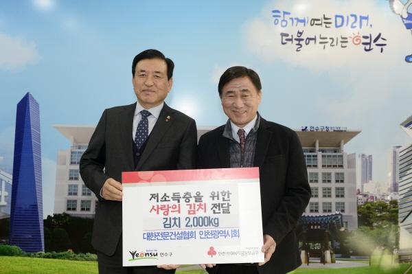 연수구는 23일 대한전문건설협회 인천광역시회로부터 저소득층을 위한 ‘사랑의 김치’ 2,000kg를 전달 받았다.