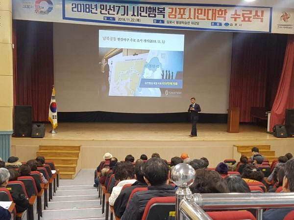김포시는 지난 22일, 평생학습관 대강당에서 "2018년 민선7기 시민행복 김포 시민대학" 수료식을 개최하고 2개월이 넘는 일정을 마무리했다.