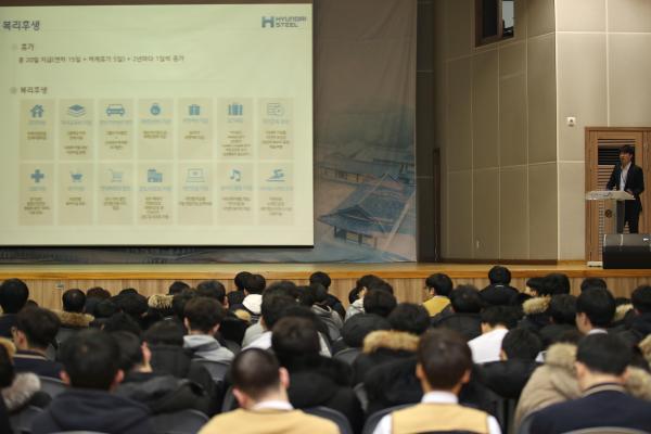 채용행사와 함께 진행된 현대제철 인천공장 채용설명회에서는 재능고등학교 졸업 예정자 200여명이 참석한 가운데, 현대제철 인사담당자의 회사소개와 모집요강 설명이 있었으며, Q&A시간에는 참여 학생들의 질문세례가 이어지며 행사장은 양질의 일자리를 찾는 학생들의 취업열기로 가득했다.