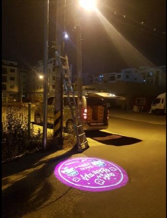 로고라이트는 문구나 그림이 그려진 이미지 글라스에 LED등을 투사해 벽면이나 바닥에 이미지를 현출하는 장치로 주민들이 야간 보행시 느낄 수 있는 불안감 해소와 범죄자의 심리를 위축시키는 등 범죄예방 효과가 있다.