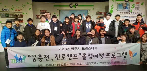 양주시 드림스타트는 지난 22일부터 23일까지 1박2일간 서울대학교 캠퍼스와 서울시 강서구 소재 국제 청소년센터 등지에서 ‘꿈 충전 진로캠프’를 진행했다.
