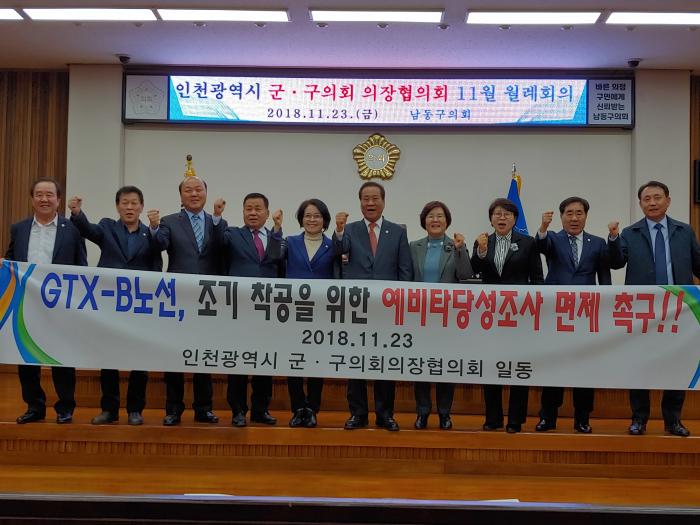 인천시 연수구의회 김성해 의장은 지난 23일 인천광역시군·구의회의장협의회(회장 : 인천광역시 동구의회 의장 송광식)에서 개최한 월례회의에서 GTX-B노선에 대한 예비 타당성 조사를 면제해 줄 것을 촉구하는 결의안을 안건으로 발의했다.