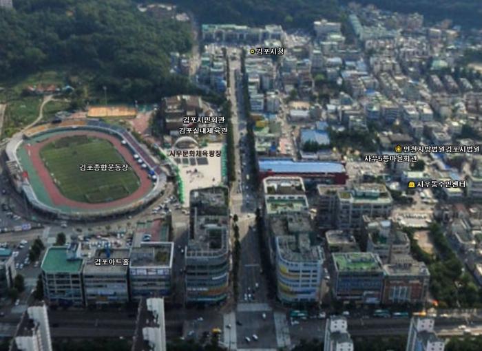 | 하늘에서 본 사우문화체육광장의 모습. |
