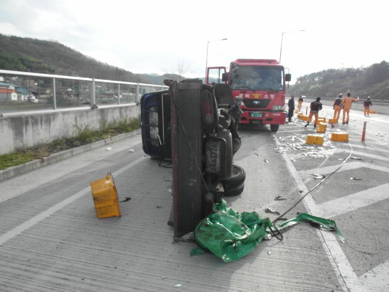 포항남부소방서 119구조구급센터는 22일 14시13분경 포항시 남구 동해면 약전리 산업도로상에서 발생한 1톤포터차량 단독 전복 교통사고 현장에 출동하여 요구조자 안모씨(68세,남)을 구조하고 2차사고 방지를 위한 현장안전 조치를 하였다. 현장에 출동한 구조구급센터장 심형섭은 안전에 취약한 화물차량 전복사고에도 불구하고 요구조자 안모씨는 사고 당시 안전벨트를 착용한 덕분에 어깨 및 손부의의 단순한 경상에 그쳤다고 말하며 운전 중 안전벨트 착용을 강조하였다.