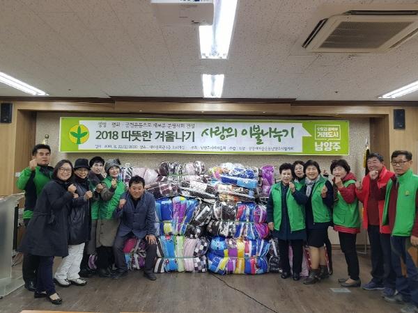 직장·공장 새마을운동 남양주시협의회는 지난 22일 이웃과 함께 따뜻한 겨울나기를 실천하는 ‘2018 사랑의 이불나누기’ 행사로 지역내 어려운 이웃을 위한 이불 100채를 전달했다.