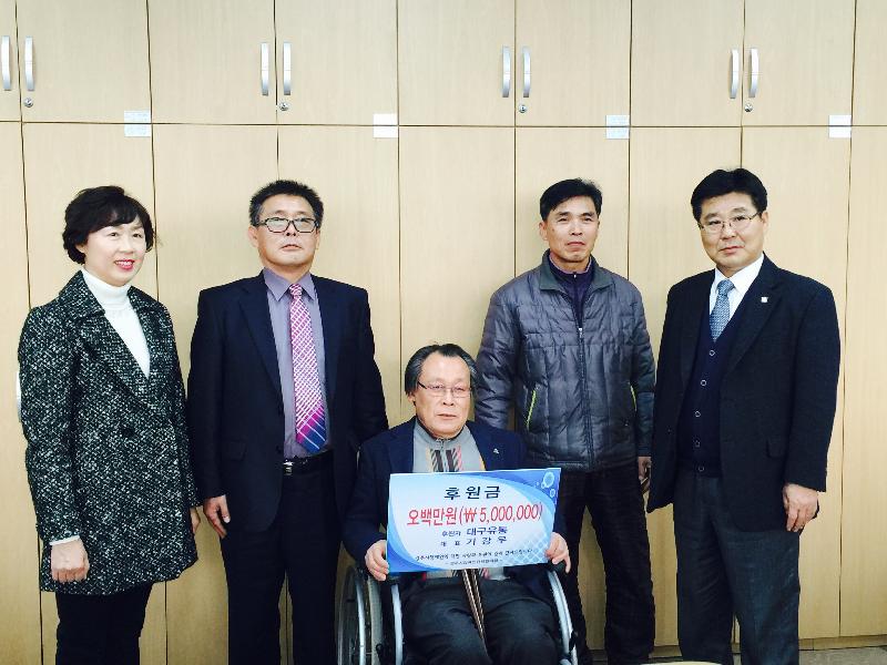 대구유통 입실점(대표 기강우)은 22일 연말연시를 앞두고 경주시청을 방문하여 어려운 장애인들의 복지증진을 위해 후원금 5백만 원을 경주시장애인단체협의회에 전달했다. 전달식에는 김헌덕 경주시장애인단체협의회장, 이상인 (사)경북지체장애인협회 경주시지회장, 배예경 (사)경북장애인부모회 경주시지부장, 정태룡 복지지원과장 등이 참석했다.기강우 대표는 “작은 정성이지만 관내 장애인들의 권익향상과 복지증진에 조금이나마 보탬이 되기를 바란다며, 앞으로도 지속적 나눔을 실천할 것”임을 전했다.김헌덕 협의회장은 “지역 장애인들의 복지증진을 위해 많은 지원과 관심에 깊은 감사를 드린다.”며, “대구유통 입실점 임직원들의 훈훈한 마음으로 보다 따뜻한 겨울을 보낼 수 있을 것”이라며 감사의 뜻을 표했다.// 김희철 기자 khc4236@hanmail.net