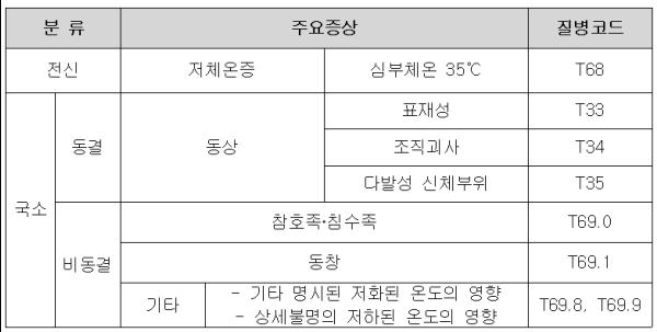 응급실 운영 의료기관 25개소 내원환자 중 한랭질환자 발생현황 감시
