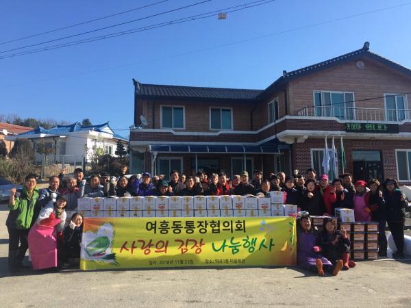 여주시 여흥동에서는 지난 23일 이웃사랑 김장김치 나눔 캠페인을 펼쳤다. 이날 여흥동통장협의회에서는 항암배추 1,000여 포기를 통장 및 부녀회 등 100여명이 참여하여 김치를 담가 어려운 이웃에 전달했다.