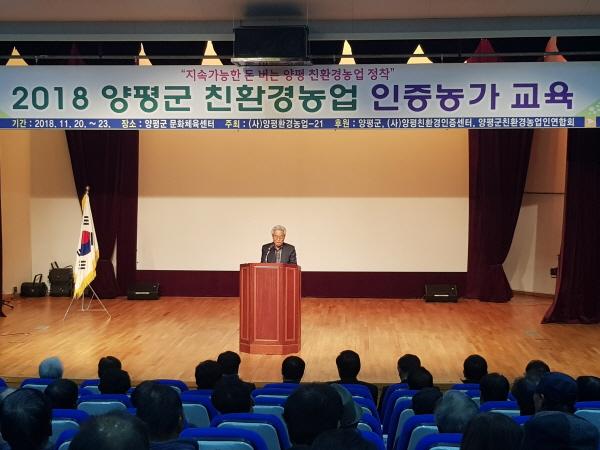 양평환경농업-21추진위원회가 주최하고 양평군, 양평친환경인증센터 , 친환경농업인양평군연합회가 후원하는 ‘2018 양평군 친환경농업 인증농가 교육’이 지난 20일부터 23일까지 4일간 양평군 문화체육센터에서 실시됐다.