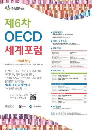 제6차 OECD 세계포럼은 인류 모두를 위한 ‘미래의 웰빙’을 주제로 OECD와 통계청 그리고 인천시가 공동으로 주최하는 국제 포럼이다.