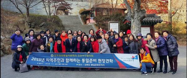 이날 견학은 지역사회 평화통일분위기 조성 및 통일공감대 형성을 위해 실시됐으며, 강화도 통일문화유적지인 평화전망대와 전등사를 다녀왔다.