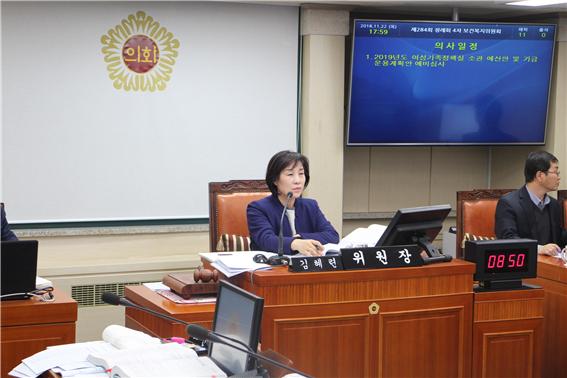 김혜련 보건복지위원장, 3일에 걸친 면밀한 예비심사를 통해 19개 사업, 129억원 증액