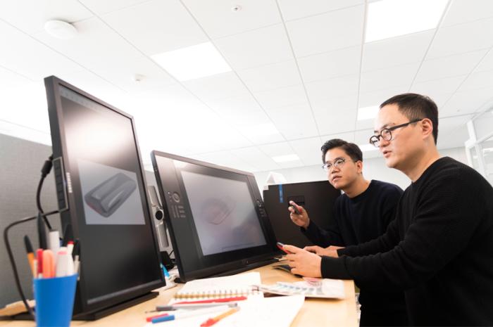 | 심형섭, 전계진 디자이너(오른쪽부터). 삼성전자 메모리사업부 브랜드제품마케팅그룹은 SSD, 메모리카드, USB 메모리 등 삼성전자의 모든 소비자용 메모리 제품 디자인을 책임진다. |