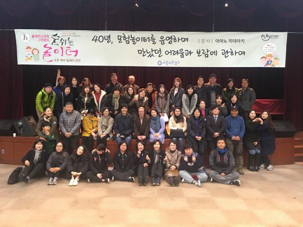 첫 번째 강연은 지난 24일 10시부터 보건소 5층 강당에서 일본 모험놀이터의 역사를 함께한 아마노 히데아키 모험놀이터만들기협회 총괄이사가 진행했다. ‘40년, 모험놀이터를 운영하며 만났던 어려움과 보람에 대하여’를 주제로 참석한 100여 명의 시민에게 많은 감동과 깨달음을 얻게 했다.
