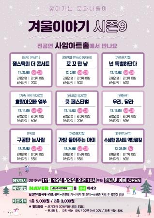 ‘찾아가는문화나들이 겨울이야기 시즌9’ 공연예매는 남양주시티켓예매사이트에서 가능하며, 사암아트홀에서 현장예매도 실시한다. 1층 객석은 5,000원 2층 객석은 3,000원에 관람 가능하다.
