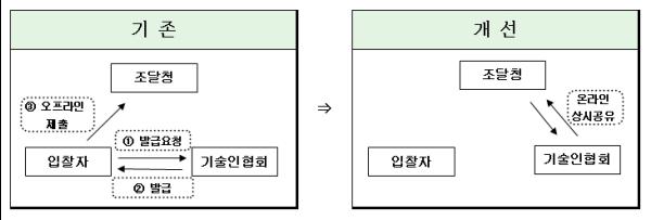 과거에는 입찰자가 기술인협회로부터 경력증명서를 발급받아 조달청에 직접 제출했으나 이번 조치로 조달청과 기술인협회가 경력정보를 온라인으로 상시 공유하게 된다.