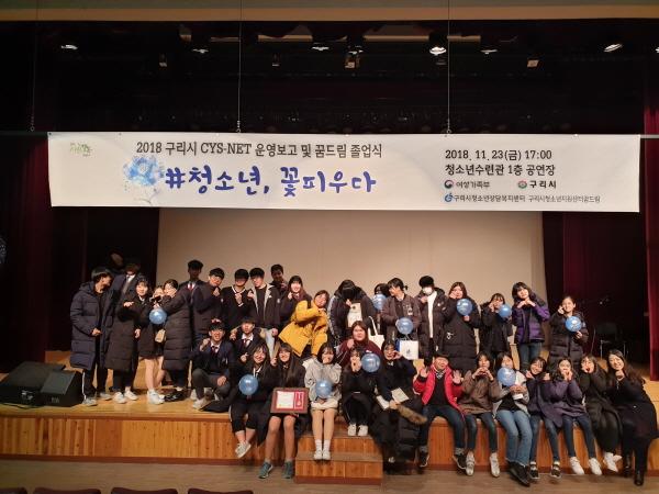 구리시 소재 청소년상담복지센터에서는 지난 23일 구리시 청소년수련관 1층 공연장에서 200여명의 청소년과 운영위원회 위원, 실행위원회 위원, 지역 사회 청소년 유관기관이 모인 가운데 한해를 돌아보는 지역 사회 통합 지원 체계 운영 보고 및 꿈드림 졸업식인 ‘청소년 꽃 피우다’ 행사를 개최했다.
