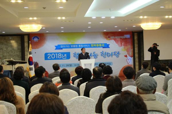 이날 행사는 대한민국공무원 음악대전에서 금상을 수상한 박민선 주무관과 사회복지사밴드인 랄라리밴드의 축하 공연을 시작으로 2018년 행복나눔사업 성과보고, 나눔 유공자 표창, 축사, 사랑의 연탄 성금과 이웃돕기물품 전달식 순으로 진행됐다.