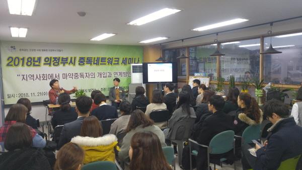 의정부시 중독관리통합지원센터는 지난 21일 센터 교육실에서 중독 예방 네트워크 세미나를 성황리에 개최했다. 김장래 국립정신건강센터 정신건강의학전문의가 ‘지역사회 마약중독자의 개입과 연계 방안’이라는 제목으로 주제발표 하였으며, 신한대학교 사회복지과 임원선 교수가 좌장을 맡았다.