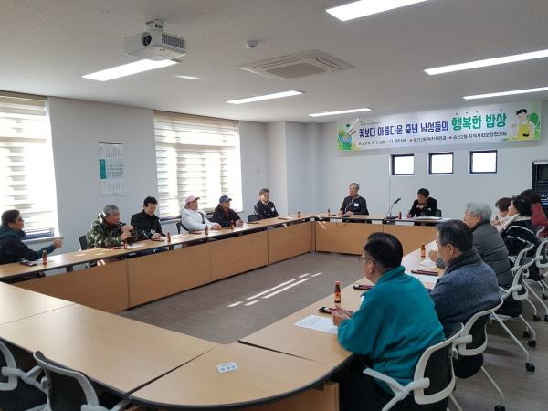 의정부시 송산2동 복지지원과는 지난 23일 행정복지센터 3층 회의실에서 고무중 복지지원과장을 비롯한 송산2동 지역사회보장협의체 위원 5명과 교육생 9명이 참석한 가운데 ‘꽃보다 아름다운 중년 남성들의 행복한 밥상’ 사업 종결 간담회를 개최하고, 참여자 소감발표와 설문조사를 통해 교육생들의 건의사항을 청취했다.
