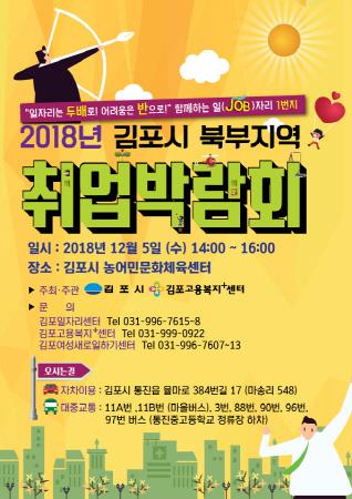 김포시는 김포고용복지플러스센터와 공동으로 내달 5일 오후 2시부터 4시까지 “2018년 김포시 북부지역 취업박람회”를 김포농어민문화체육센터에서 개최한다.