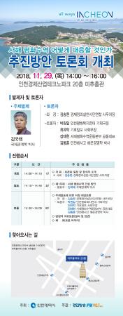 인천시는 오는 29일 송도 미추홀타워에서 ‘서해 평화수역 어떻게 대응할 것인가’라는 주제로 일반시민, 관련 공무원 등 100여명이 참석하는 인천 해양·항만발전 토론회를 개최한다고 밝혔다.