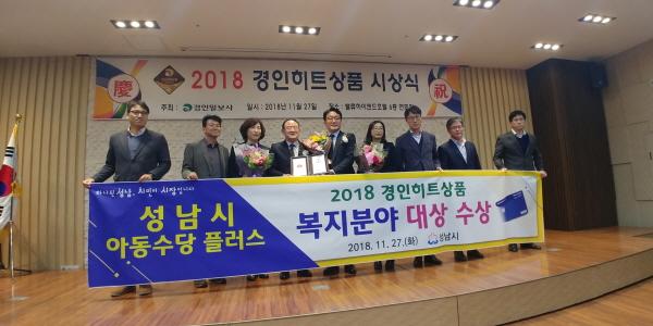 경기 성남시는 시의 ‘아동수당플러스 사업’이 ‘2018 경인히트상품’ 복지분야 대상에 선정돼 인증패를 수여받았다고 27일 밝혔다.
