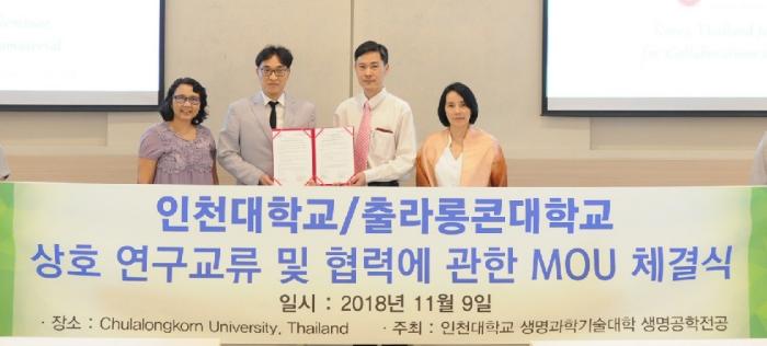 인천대학교 생명공학부 생명공학 전공 (전공주임: 김교범 교수)은 지난 11월 9일 태국 방콕의 출라롱콘 대학교와 상호협력 및 연구/학생교류를 위한 MOU를 체결하였다.