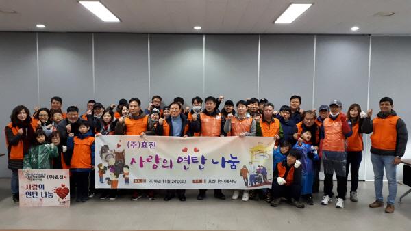 이날 행사에는 ㈜효진의 직원과 가족, 시흥시 여성새일팀장을 비롯한 종사자, 1% 나눔복지재단 등 40여명이 참석하여 사랑의 연탄을 배달했다. 처음 방문한 곳은 은행동에 위치한 노인복지시설로 참가자들의 자녀까지 일렬로 서서 연탄 1,000장을 전달하며, 어르신들이 따뜻한 겨울을 날 수 있도록 사랑의 연탄 쌓기에 동참하여 훈훈함을 자아냈다.