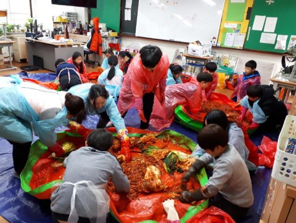 명달리숲속학교에서는 올해 초부터 11월까지 빈병 약 2,700개를 모아 바꾼 성금으로 서종면 내 어렵게 홀로 사는 독거어르신들과 아동을 위한 겨울모자와 목도리 28세트를 구입하여 면사무소에 전달했으며, 수입초등학교 4학년 학생들은 2일간 직접 담근 김치를 10명의 어르신 집에 방문하여 직접 전달했다.