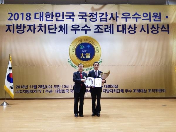 동두천시의회 박인범 의원은 28일 지방자치 TV가 주관한 ‘2018 지방자치단체 우수 조례 대상’ 수상자로 선정됐다. 우수 조례 대상은 국정감사 우수의원·지방자치단체 우수 조례 조직위원회에서 2018년도 의정평가 결과를 발표하고 박인범 의원을 수상자로 선정한 것이다.