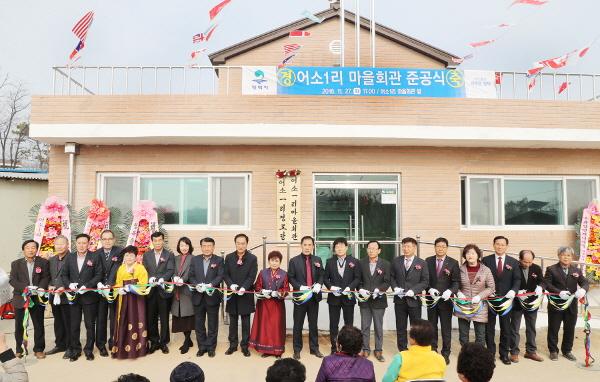평택시 청북읍은 지난 27일 정장선 평택시장, 권영화 시의장, 국회의원, 기관·단체장 등 내빈 및 마을주민 100여명이 참석한 가운데 어소1리 마을회관 준공식을 개최했다. 행사는 경과보고와 내빈 소개 및 마을회관 건립에 따른 축하 행사로 진행됐다.