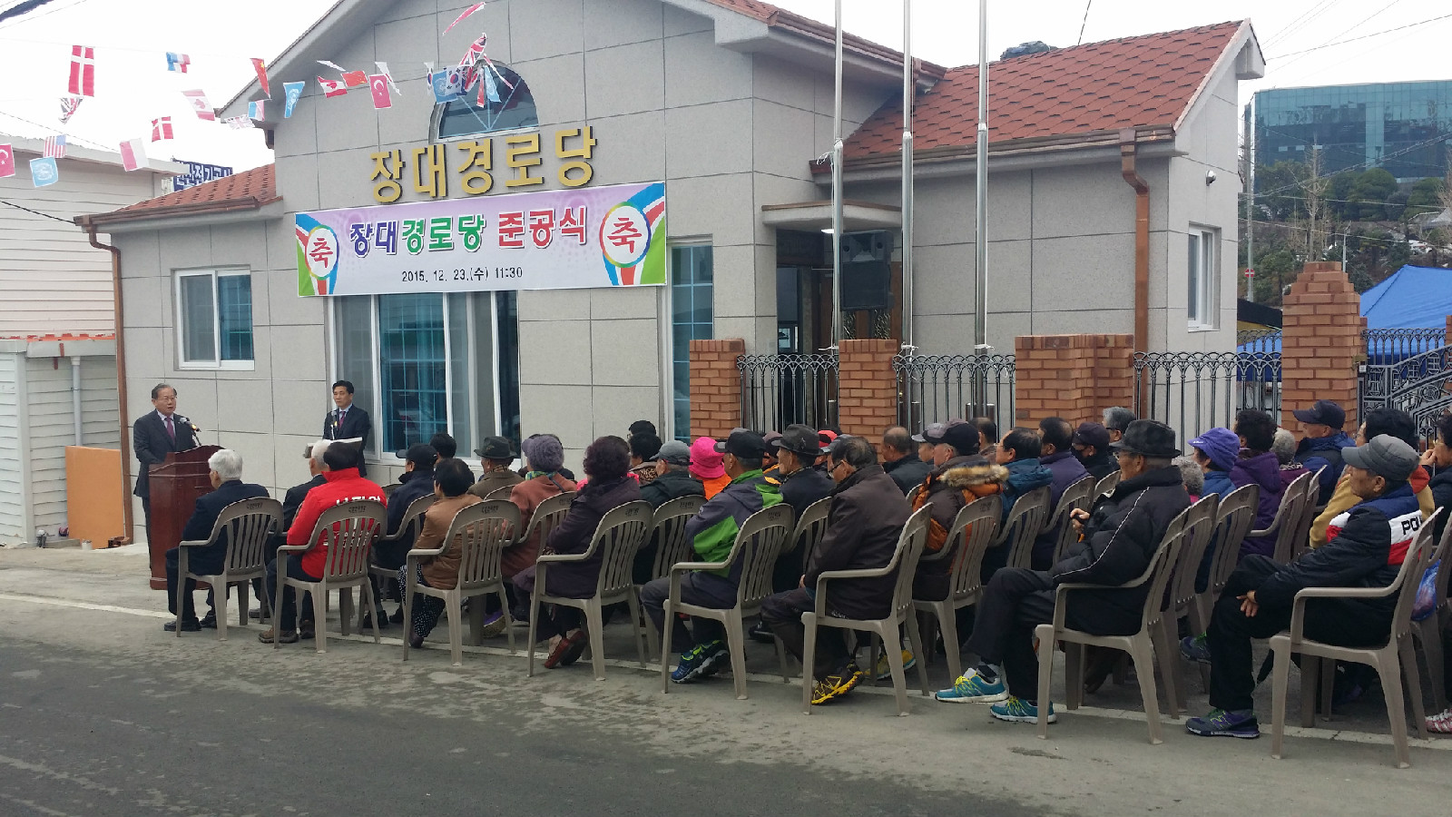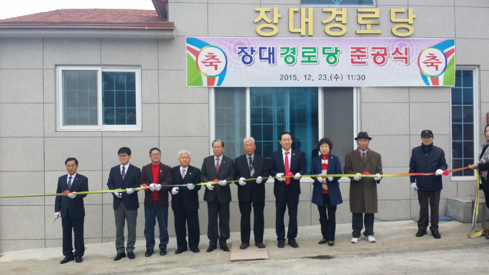 경로당 준공식에 참석하신 김동진 시장님께서는 기념사를 통하여 평소 쉴 곳이 마땅치 않아 불편이 많았는데도 불구하고 오늘의 보금자리가 있기까지 기다려준 어르신들과 주민들의 고마운 마음에 감사하다는 말을 전하고 격려하였으며, 참석하신 어르신과 주민들은 장대경로당 준공식이 있기까지 물심양면으로 전폭적인 지원을 다해 주신 시장님께 고마움과 감사의 마음을 표했다.