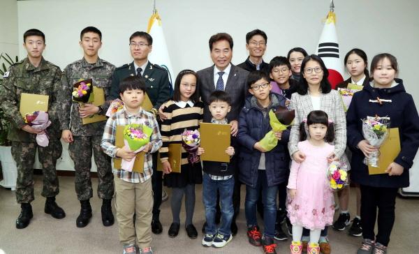 용인시는 28일 지난 9월 공모한 ‘처인성 전국 독서감상문 대회’ 수상자 28명과 지난 1월부터 10월에 열린 ‘독서마라톤’ 우수 완주자 20명에 대한 시상식을 시장실에서 열었다. 이날 백군기 용인시장은 수상자들을 축하하고 상장을 전달했다.