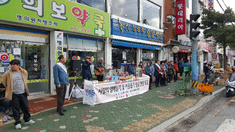 능포, 마전, 장승포 3개동은 지난 21일 오후 2시부터 옥수동 희보약국 앞에서 연말연시를 맞아 사랑의 열매를 매개체로 하여 나눔을 통해 더불어 행복한 사회를 만들고 어려운 이웃과 함께하는 분위기를 조성하고자 ‘희망 2016 나눔캠페인’을 전개했다.