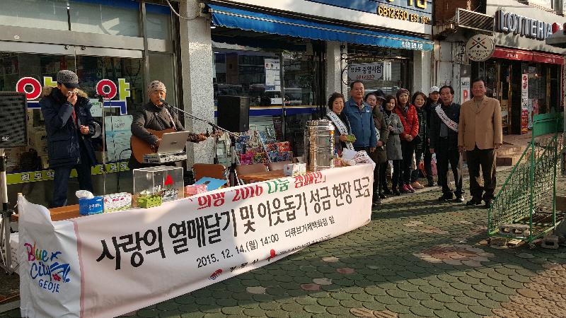 이번 행사에는 3개동 기관단체 회원 30여명과 장승포와 고현 일원에서 활동하고 있는 2인조 통기타 그룹 ‘소리빛(리더 이상무)’의 열정적인 공연으로 시민들의 발걸음을 모금함 앞에 멈추게 했다.