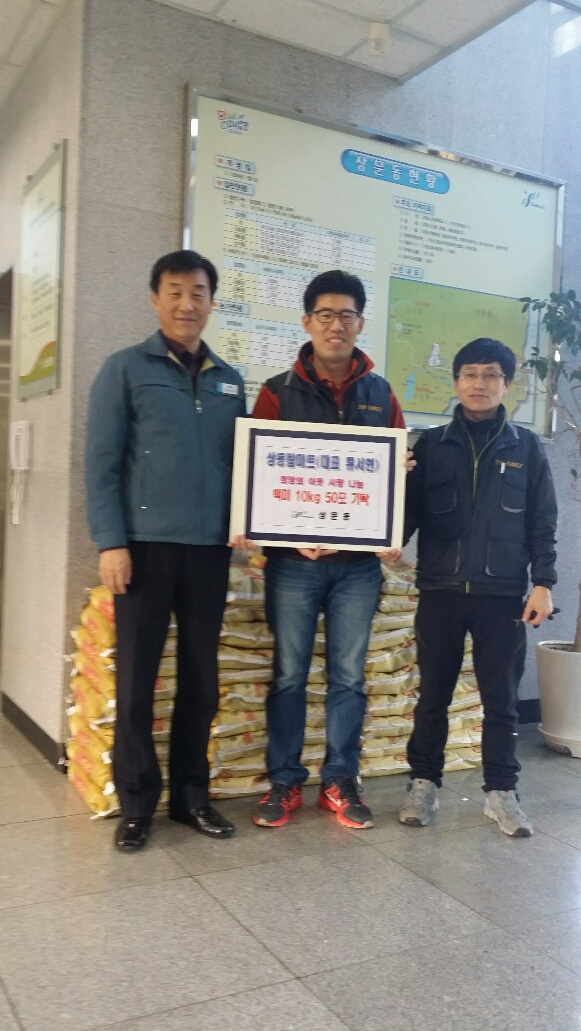 지난 21일에는 서원탑훼밀리마트 상동점(대표 류서현)에서 백미 10㎏ 50포를 기탁했다. 류서현 대표는 ‘추운 날씨에 쌀이라도 집에 넉넉히 있으면 마음만은 따뜻할 것 같다’며 기탁소감을 밝혔다.