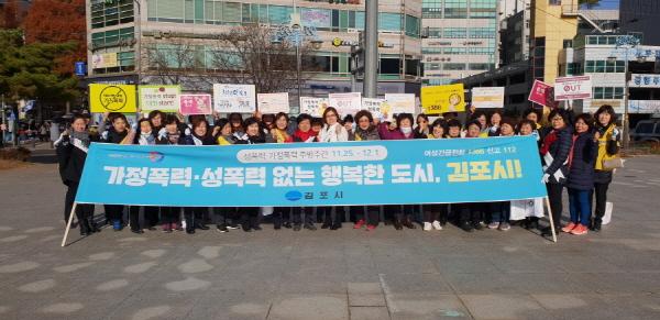 이날 캠페인에는 김포시 공무원, 김포경찰서, 김포시여성단체협의회, 여성친화 시민참여단, 김포여성의전화, 김포여성상담센터, 지역연대 등 60여명이 참여하여 사우동 일원을 가두행진하고 폭력예방 홍보 리플릿과 핫팩을 배부하며 폭력없는 도시가 조성될 수 있도록 홍보했다. 특히, 가정폭력 · 성폭력 예방 홍보와 더불어 최근 사회적으로 문제되고 있는 디지털성범죄 피해의 심각성을 알리고자 '불법 촬영 NO!, 불법동영상 유포 OUT' 등의 디지털 성범죄예방에 대한 내용을 포함하여 피켓과 현수막을 통해 주변 거리를 오가는 시민들 대상으로 가정폭력과 성폭력 범죄에 대한 시민들의 관심을 높이는 시민실천운동을 전개했다