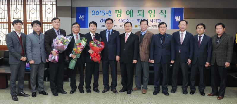 인천광역시의회(의장 노경수)는 2015년 명예퇴임식을 지난 23일 오전 의회 접견실에서 개최했다