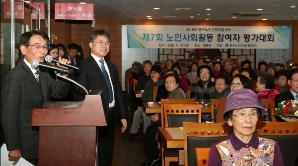 올해로 7회째를 맞이한 노인사회활동 평가대회에는 홍인성 중구청장을 비롯하여 최찬용 중구의회 의장 그리고 올 한 해 노인사회활동에 참여한 어르신 197명이 참석했다.