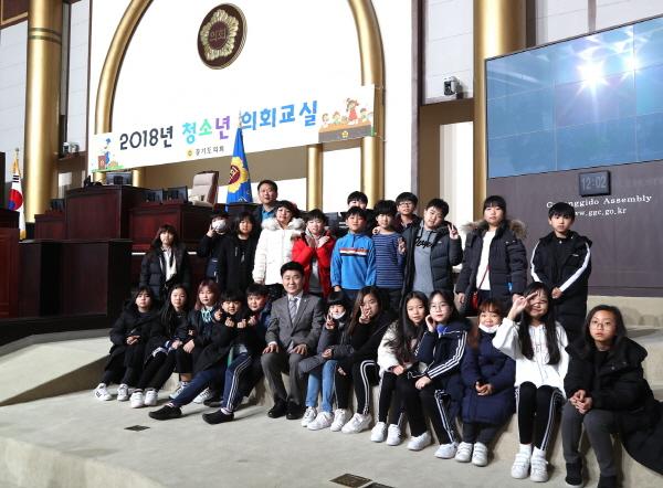 경기도의회 김원기 부의장은 29일 의정부용현초 학생 77명과 함께 “2018 제30회 경기도의회 청소년의회교실”에 참여하여 학생들의 1일 도의원 체험학습을 지원했다.